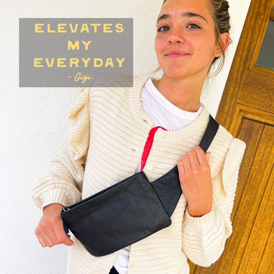The Crossbody Belt Bag exceeded my expectations with its impeccable craftsmanship. From the luxurious black leather to the high-end gold hardware sourced from Japan, it's the perfect blend of style and sustainability, making it my go-to accessory for any occasion.